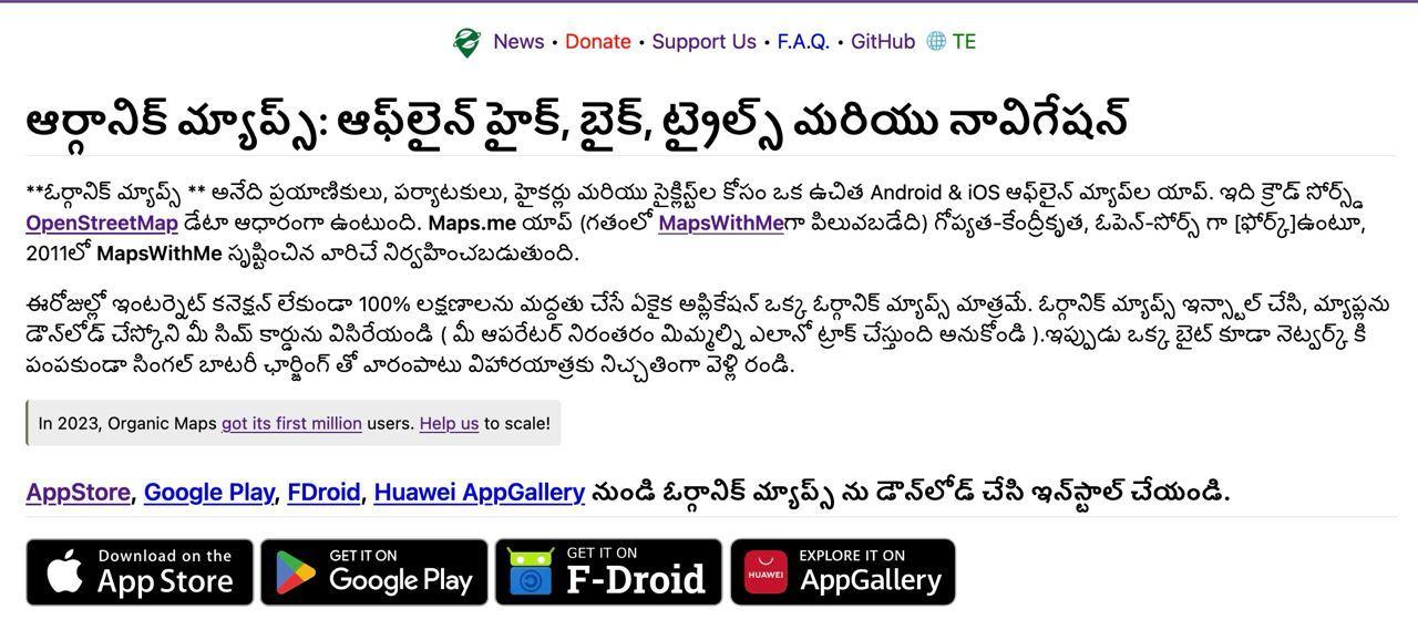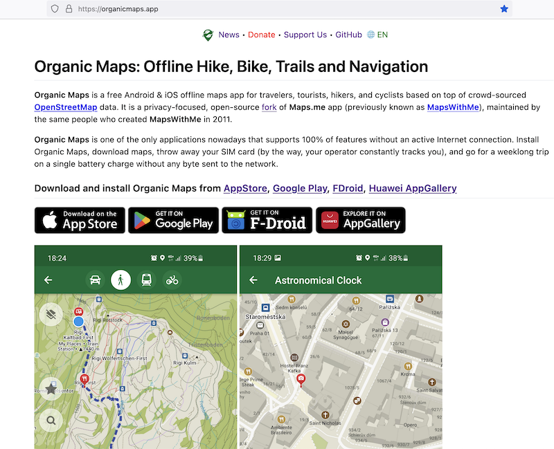 Organic Maps is an open-source Android & iOS offline maps app for travelers, tourists, hikers, and cyclists based on top of crowd-sourced OpenStreetMap data and curated with love by MAPS.ME founders.